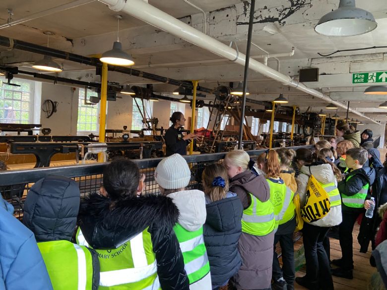 We started with a tour of the mill. The class played with traditional children's toys, wore some outfits befitting different roles in the mill and practised some of the jobs they would have been expected to do (like scavenging, replacing the bobbins and carrying the cotton). Following this the children enjoyed seeing how the different machines worked and learnt about the dangers they posed.